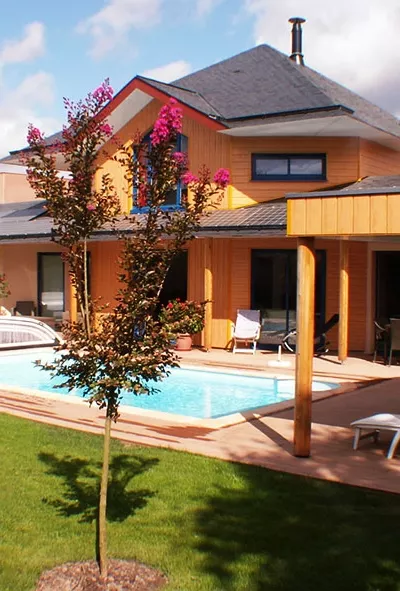 Nous réalisons également des aménagements extérieurs (pergola, terrasse bois, brise-soleil, brise-vue), ainsi que des travaux d'isolation thermique par l'extérieur avec bardage bois.