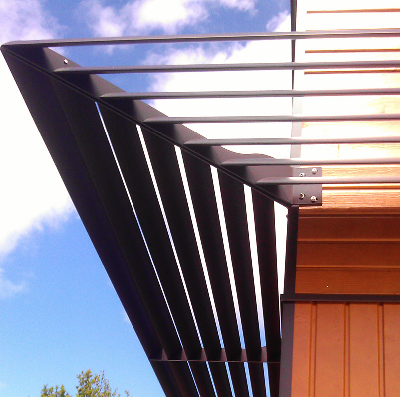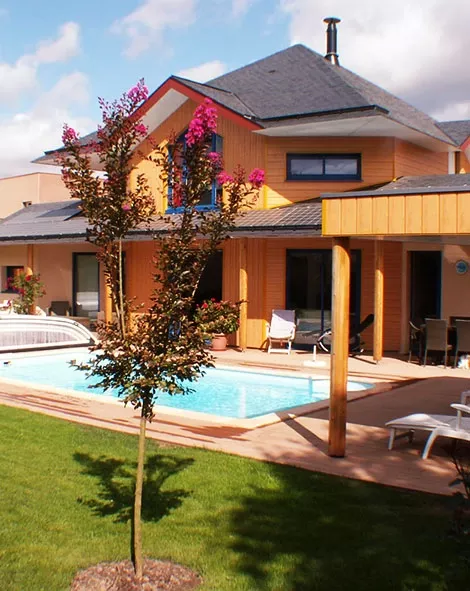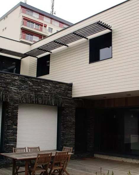 Nous réalisons également des aménagements extérieurs (pergola, terrasse bois, brise-soleil, brise-vue), ainsi que des travaux d'isolation thermique par l'extérieur avec bardage bois.